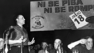 El enemigo más claro –y, por tanto–, menos peligroso, es el comunista. O tú o yo. No hay equívoco, con el comunista. De mucho más peligro es el complejo de los otros grupos antifascistas. No terminan de estar enfrente sin por eso ponerse al lado. Y si se ponen al lado, es para destruir el fascismo desde dentro. Es muy varia la enorme especie de «los antifascistas». De tratarse de algo botánico o zoológico, ya habría surgido un nuevo Linneo que catalogase esas variedades. Pero se trata de algo moral, social, espiritual, de algo que no puede investigar –no ya el biólogo– sino ni siquiera la policía. Se trata de una inquisición. De una alta y grande inquisición. Santa tarea. Tarea santa y grave que vamos a asumir nosotros, en temporáneos, renovados, solemnes y flameantes Autos de F.E.