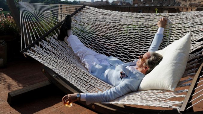 La vaciedad del protagonista nos lleva directamente a problema de la disolución del yo que empieza en el siglo XX, y que el filósofo francés Deleuze nos ha hecho reflexionar profusamente, y se muestra en toda su crudeza en este siglo recién estrenado. El problema de la sociedad contemporánea posindustrial es la auténtica falta de ser, sustituida por una apariencia de ser que esconde solo el tener. Jep Gambardella es el típico cínico ilustrado que se jacta de su propia falta de cualquier moral o creencia. El mundo es una mentira, un teatro en el que cada uno interpreta su papel, bien o mal, y la medida de la interpretación la da el éxito social. La profundidad existencial de las perfomances que Jep tiene que cubrir mediante entrevistas para un público culto que compra la revista para la que escribe, en realidad, son propuestas incomprensibles, decididamente estúpidas que intentan comprar el aburrimiento de una clase absolutamente insensible al sufrimiento humano.
