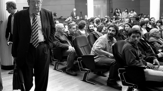 Última clase del profesor Vidal Peña García en el salón de actos de la Facultad de Filosofía y Letras de la Universidad de Oviedo, sobre «Relaciones entre la filosofía cartesiana y la filosofía kantiana».