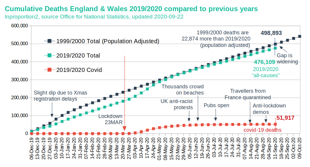 Inglaterra: Mortalidad en 2020 comparada con la fuerte ola de influenza de 1999/2000 ( InProportion )