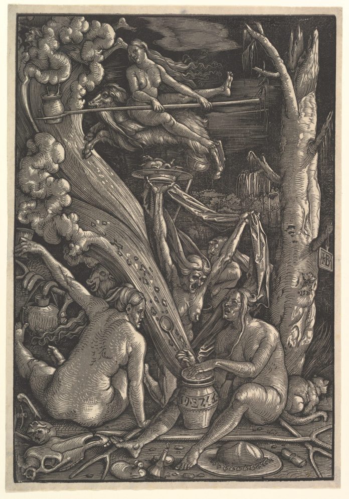 Las brujas (Hans Baldung Grien, 1510). Varias brujas realizan toda una serie de actividades que son asociadas a pactos con el demonio. Durante mucho tiempo, en la ciudad se ha seguido creyendo que Tituba fue la única culpable de los maleficios del lugar por que al ser una persona racializada debía conocer la magia negra que aparece representada en esta ilustración.