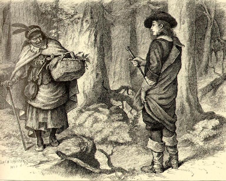 Ilustración que recrea el asesinato del pastor Burroughs (Henry Davenport, 1901). Una de las historias más conocidas en Salem es como recitó el padre nuestro, una hazaña que los brujos no podían realizar.