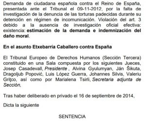 La sentencia del TEDH considera vulnerado el artículo 3 de la Convención Europea de Derechos Humanos, que concluye que «nadie podrá ser sometido a tortura ni a penas o tratos inhumanos o degradantes», en su vertiente procesal.