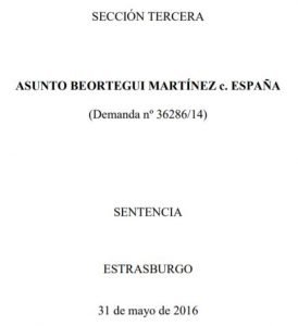 El caso tiene su origen en una demanda (nº 36286/14) interpuesta ante el TEDH contra el Reino de España por un nacional de este Estado, el Sr. Xabier Beortegui Martínez, (“el demandante”), el día 7 de mayo de 2014, en virtud del artículo 34 del Convenio para la Protección de los Derechos Humanos y de las Libertades Fundamentales (“el Convenio”).