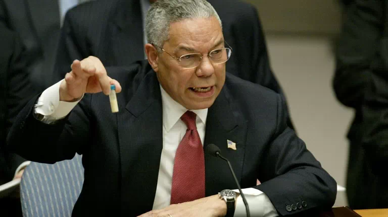 Colin Powell presentó ante el Consejo de Seguridad pruebas que resultaron ser falsas para justificar la invasión de Irak