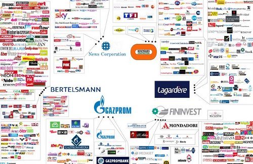 Desde hace alrededor de 40 años puede verse un reagrupamiento paulatino de los medios de difusión en trusts internacionales. Hoy en día, más de dos terceras partes de la prensa occidental pertenece a sólo 14 grupos (21st Century Fox, Bertelsmann, CBS Corporation, Comcast, Hearst Corporation, Lagardère Group, News Corp, Organizações Globo, Sony, Televisa, The Walt Disney Company, Time Warner, Viacom y Vivendi). En este momento, la alianza montada entre Google Media Lab y First Draft está creando vínculos entre esos grupos, que ya se hallaban en posición dominante.