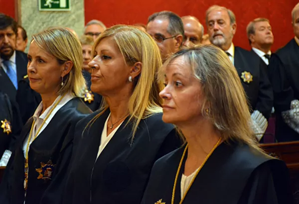 Susana Polo, en el centro, flanqueada por sus madrinas en el acto de toma de posesión, Pilar Teso, a la izq., y Clara Martínez de Careaga, también magistradas del Tribunal Supremo. Las Magistrada Ana Ferrer y Susana Polo, ambas pertenecientes a la Asociación «Jueces y Juezas para la Democracia», han formulado Voto Particular discrepante de la Sentencia del Tribunal Supremo en el Caso ERE..