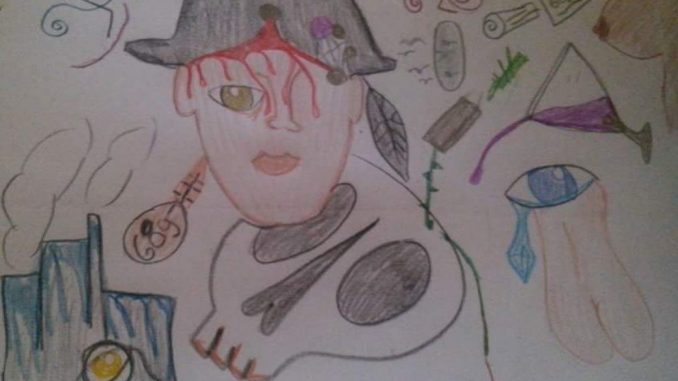Cuando le conocí se hallaba allí desde hacía poco. Y todas las veces que fui a visitar a mi poeta le veía también a él. Comenzó a hablarme. De este modo pude saber, un poco por él y un poco por los médicos, su historia. Su conversación era singularísima; pasaba de un discurso paradójico, pero al mismo tiempo inteligente, a manifestaciones de una vulgaridad peor que plebeya, bestial. Parecía que estuviesen unidos en él Asmodeo, con su agudeza cínica, y Calibán, con su ciega torpeza de bruto.