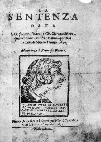 La sentencia dictada a Guglielmo Piazza y Gio. Giacomo Mora, según la cual asolaron la ciudad de Milán en el año 1630 con «pestíferos»