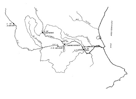 Barranco Salado, altitud 400 m.  s/m. m. Vertiente R. Escalona a 8 km. de Bicorp.