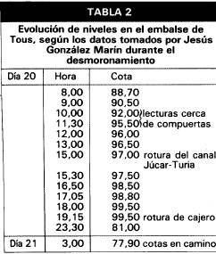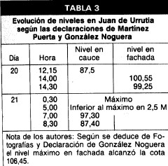 Por el contrario, se conoce la evolución de niveles en la Central de Juan de Urrutia, que tras la rotura de la presa dejan de estar influenciados por el remanso de TOUS. La información sobre estos niveles se recoge en la tabla 3.