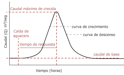 Hidrograma (Caudal  x Tiempo): Proporciona una visión del comportamiento de la Cuenca Hidrográfica ante una determinada precipitación