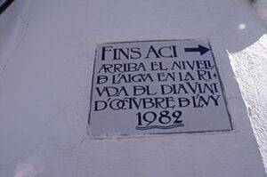 Testigo: Cuando ya tuvimos visión el día siguiente, que ya se pudo ver el agua donde había llegado sí se pudo comprobar que había llegado, sólo hay unas letras allí, en la central que fue de noche que es el anagrama de H. E. y el agua alcanzó hasta esas letras.