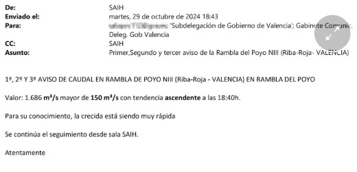 El diario El País ha publicado los correos del servicio automático de alertas, Sistemas Automáticos de Información Hidrológica (SAIH), enviados a la Delegación de Gobierno.
