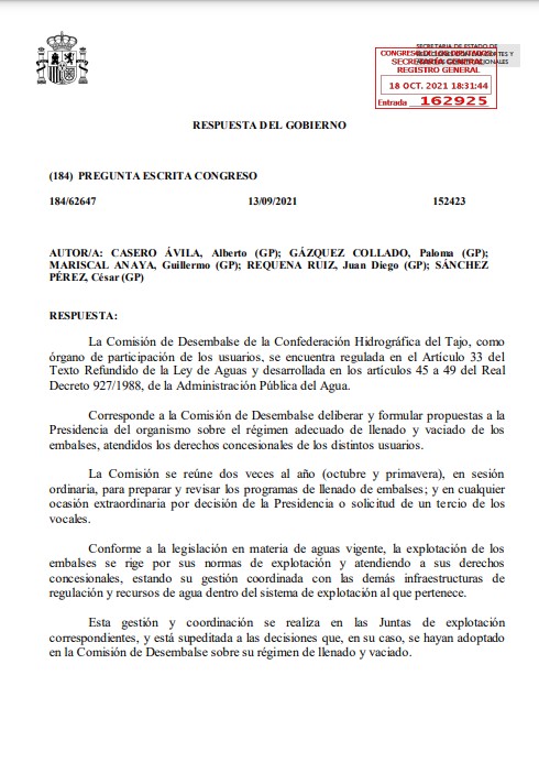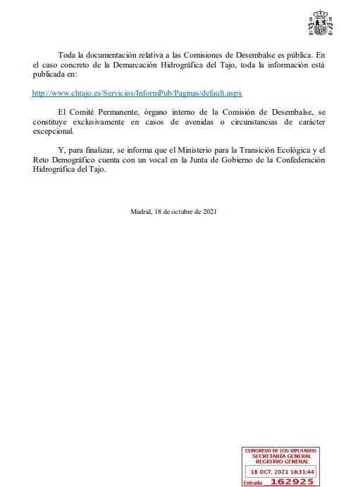 Recordemos que, entre las Funciones de la Comisión de Desembalse se encuentran la Gestión de Emergencias, la Coordinación de operaciones o el seguimiento continuo del estado de los embalses y acuíferos, evaluando las condiciones hidrológicas para tomar decisiones informadas sobre el manejo del agua (Real Decreto 927/1988, de 29 de julio, por el que se aprueba el Reglamento de la Administración Pública del Agua y de la Planificación Hidrológica).