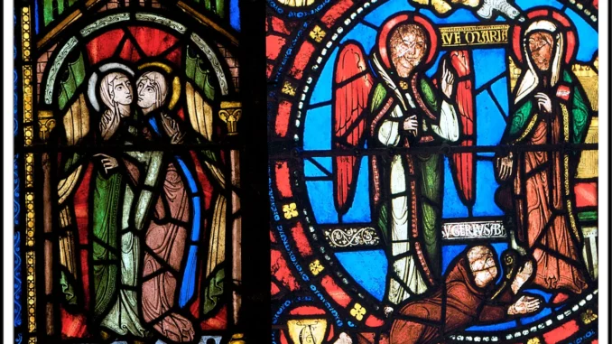 Como en todas las innovaciones de Suger, vidrieras emplomadas las había desde antiguo y hay documentos que las sitúan en Reims hacia el año 905. Naturalmente, no ha quedado ni una y no sabemos cómo eran, pero el Abad le dio una importancia suprema a esta técnica y un uso inesperado al usarlas en sustitución del muro. Las ilustraciones murales de escenas bíblicas habían sido esenciales para mostrar los episodios sagrados al común que acudía a los templos, en tanto que los manuscritos miniados cumplían la misma función para los ricos propietarios de estos objetos de lujo. El cristianismo fue una religión marcada, desde el principio, por la ilustración, dado que tenía como fundamento una historia, una novela, una leyenda que es la vida de Jesús de Nazaret. Además de los Evangelios, sólo la pintura, el dibujo, las artes visuales podían representar la novela de Jesús. A ellas se sumaron, ahora, las vidrieras emplomadas.