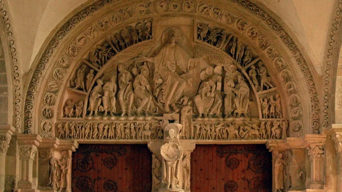 Así es como Suger dio el golpe de gracia a lo que llamamos estilo románico, a los conventos, monasterios, ermitas y basílicas edificados con arcos de medio punto, bóvedas de cañón y escasa luminosidad debida al grosor de los muros. Hasta ese momento la relación entre el creyente y su dios se concebía como una conversación muda y privada entre el alma del individuo y el Dios ignoto envuelto por la oscuridad y simbolizado en la figura de su Hijo presente en los pantocrátores y las almendras de algunos portales de iglesia. La abundante representación románica era fantástica, severa, grotesca, monstruosa o intimidatoria (Il.16 románico Vezelay).