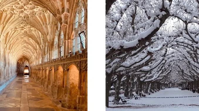 “Cuando entramos en el interior de una catedral tenemos la impresión de entrar en un bosque de innumerables árboles cuyas ramas se inclinan, las unas hacia las otras, para formar una bóveda natural al reunirse” (Estética, 1818-1829). (Ill. 11 y 12 comparación de Gloucester y la foto de Micheto).