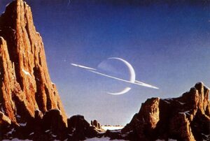 Siempre, desde que era un chiquillo – dijo mi compañero no invitado –, me ha fascinado el planeta Saturno. Sé exactamente cómo y cuándo comenzó todo. Yo debía tener unos diez años cuando cayeron en mis manos aquellas maravillosas ilustraciones de Chelsey Bonestell, mostrando el planeta como visto desde sus nueve lunas. Supongo que usted las habrá visto, ¿no es así?