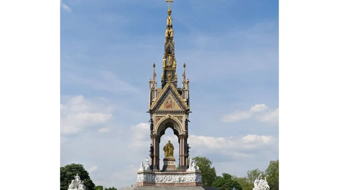 Así, por ejemplo, Georg Gilbert Scott, un discípulo de Pugin y trabajador incansable que llegó a acumular hasta 730 edificios conocidos, de los cuales 39 son catedrales y 476 iglesias, desprovistas de todo carácter. Es otro ejemplo de la capacidad industrial de los arquitectos de aquel momento. La cantidad sustituyó a la calidad y el alma mecánica a la pasión artística. No deja de ser curioso que también construyera mucho en Alemania, donde conoció a Schopenhauer y es de suponer que trataría de convencerle de que el gótico no venía de Jerusalén ni de Córdoba. Lo más popular de su obra es, sin embargo, un monumento, el Albert Memorial de 1863, que sólo se concluyó en 1872 (Ill. 59 Albert memorial) y que sólo aprecian los turistas porque es muy apropiado para para hacerse un selfi sin jugarse la vida.