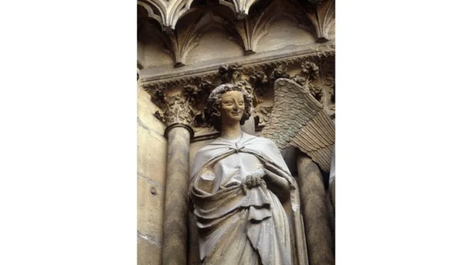 Comienza ahora el culto mariano que acabará imponiéndose en toda la cristiandad, al tiempo que la figura de Cristo se humaniza y abandona el gesto severo, vengativo, justiciero, de la imagen románica (Il, 28 tímpano de Moissac s.XII y el de 29 Beaulieu S.XIII). También los ángeles cambian de aspecto (Ill. 30 Ángel de Reims, 1260). El proceso indica claramente un acelerado deseo de humanización y familiaridad de las figuras sagradas para acercarlas a la población civil y urbana.
