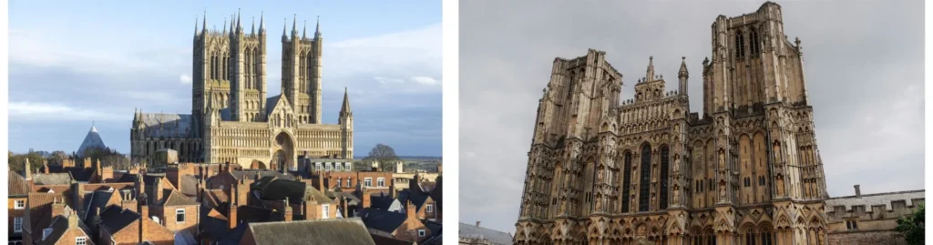 La historia de las iglesias cristianas, en gran Bretaña, había sido muy particular. El gótico primero, del XIII y XIV, se llamó allí decorated gothic (“ornamental o decorado”, en español) (Il. 40 Lincoln) y el posterior, de mediados del XIV al XVI, se llamó vertical gothic (que es nuestro flamígero) (Il. 41 Wells). Después de estos soberbios templos ya se impondrían las diversas formas del eclecticismo arquitectónico. En su desarrollo, ambos estilos, decorated y vertical, fueron imitados por el revival, aunque sólo los británicos son capaces de distinguirlos. De todos modos, su impulso inicial, lo que los hizo surgir, no fue una pasión arquitectónica, sino literaria. El GR se produjo como una imitación de la literatura, la materialización de un sueño.