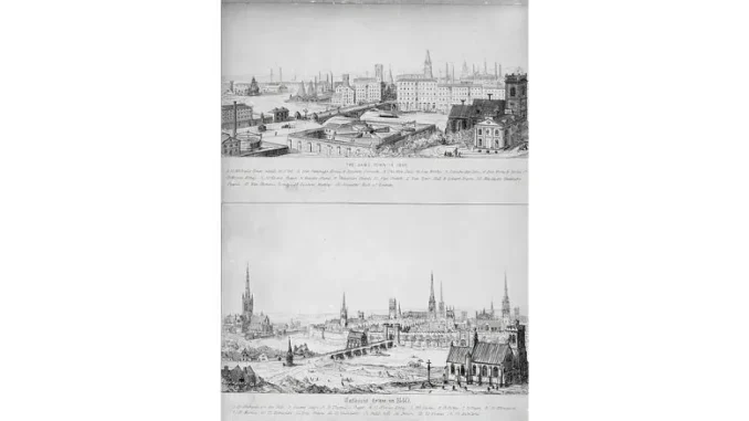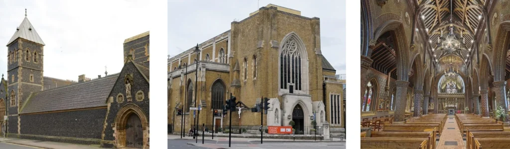 Hubo acontecimientos políticos y religiosos en las islas, ciertamente definitivos. Hacia 1818 el gobierno británico constató que en los nuevos y pobladísimos barrios obreros que la revolución industrial había ido acumulando en las grandes ciudades, no había una sola iglesia. Dado el uso que se le daba a la religión en aquella sociedad, que no era sino un modo de controlar a la población para evitar la epidemia de alcoholismo, se dictó la Church Building Act con el fin de construir iglesias en aquellos lugares dejados de la mano de Dios en sentido estricto. Entre esa fecha y 1833 se gastaron seis millones de libras en la construcción de 214 iglesias, de las cuales 170 se hicieron según el modelo del revival. En parte porque el ladrillo era más barato que la piedra, pero no sólo eso, la modernidad industrial no podía faltar y los pilares constructivos ya eran de hierro forjado. Un buen ejemplo de la mejor construcción de la época es la iglesia de St Luke’s, en Chelsea, datable hacia 1824, que aún en la actualidad es muy concurrida, en parte por el estupendo parque infantil que la rodea y al que acuden diariamente cientos de criaturas, hijos de las familias acomodadas de la zona, con sus cuidadoras orientales y latinas (Il. 48 St Luke’s).