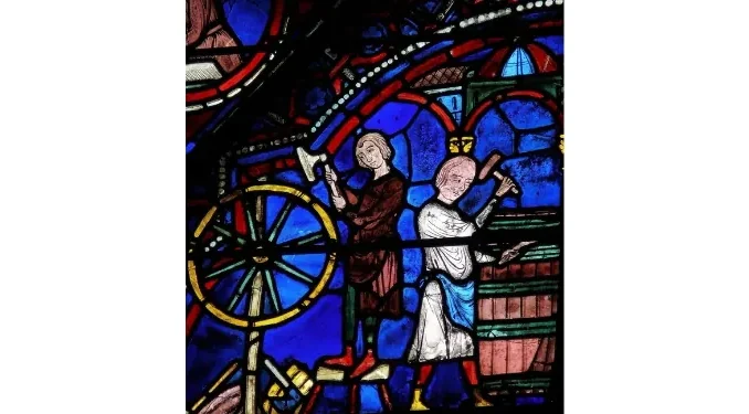 A partir de entonces la catedral, sede del episcopado, será el monumento que identifique a cada una de las ciudades y se convertirá, además, en una propiedad de los ciudadanos pues ellos son, además de la corona, quienes la financien. De hecho, la catedral contribuirá a que cada sector urbano se identifique ante la restante población con sus vestimentas e insignias propias. Así, por ejemplo, en Chartres cada gremio y cada corporación tenía su propia vidriera en una primera santificación del trabajo (Il. 23 Vidrieras artesanos) (Duby, 137). También serán las catedrales las sedes de la educación superior. Las más ricas, como la Escuela de Chartres, atraerán a cientos de alumnos que estudiarán a Cicerón, Ovidio o Virgilio. Fue en verdad un primer renacimiento, una ruptura sísmica con respecto a las oscuras e imponentes naves románicas en las que sólo se estudiaba teología.