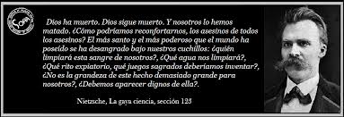 El mayor exponente del nihilismo es Nietzsche, para quien la muerte de Dios significa que ya no tenemos referentes y estamos instalados en el enorme vacío que deja Dios