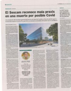 EL SESCAM RECONOCE MALA PRAXIS EN UNA MUERTE POR POSIBLE COVID