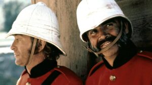 Título original: The Man Who Would Be King (1975)Duración 129 min.País: Estados UnidosDirección: John HustonGuion: John Huston, Gladys Hill (Historia: Rudyard Kipling)Música: Maurice JarreFotografía: Oswald MorrisReparto: Sean Connery, Michael Caine, Christopher Plummer, Saeed Jaffrey, Doghmi Larbi,Shakira Caine, Karroom Ben Bouih, Jack May, Mohammed Shamsi, Albert Moses,Paul Antrim, Graham AcresProductora: Columbia Pictures / Devon/Persky-Bright / Allied ArtistsSinopsis:Danny Dravot y Peachy Carnehan, dos aventureros que viajan a la India en 1880, sobreviven gracias al contrabando de armas y otras mercancías. Un día, deciden hacer fortuna en el legendario reino de Kafiristán. Después de un durísimo viaje a través del Himalaya, alcanzan su meta justo a tiempo para hacer uso de su experiencia en el combate y salvar a un pueblo de sus asaltantes. Está inspirada en un relato de Kipling. (FILMAFFINITY)Premios: