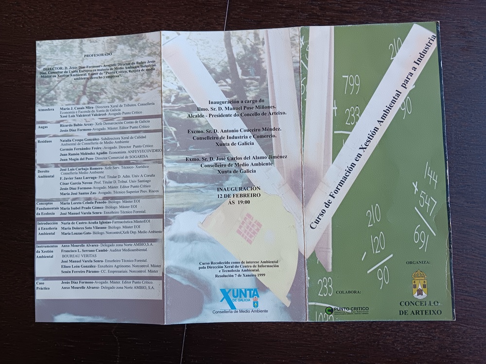 Curso de Formación en Xestión Ambiental para a Industria (1997). XUNTA DE GALICIA. ORGANIZA: CONCELLO DE ARTEIXO COLABORA: PUNTO CRÍTICO