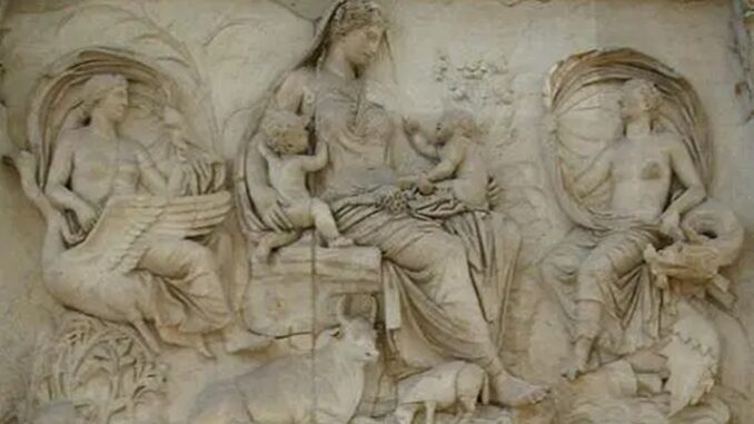 La edad de oro regida por Crono y caracterizada por la felicidad y abundancia.