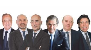 Florentino Pérez (ACS), Rafael del Pino (Ferrovial), José Manuel Entrecanales (Acciona), la familia Villar Mir y los hermanos Amodio (OHL), y Manuel Manrique (Sacyr) Clara Rodríguez