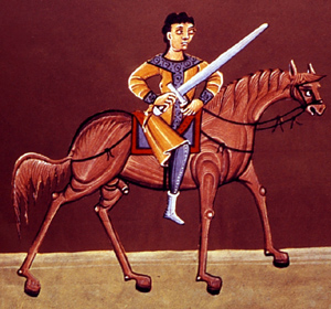 El segundo jinete representa la guerra, y el color rojo de su montura, la sangre vertida en el campo de batalla. El jinete porta además una espada que representa el enfrentamiento y el combate.