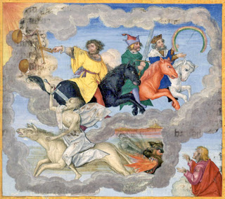Los primeros cuatro sellos originan los jinetes del Apocalipsis. Su cabalgada inaugura el comienzo del fin del mundo. Los cuatro jinetes cabalgan juntos y cuentan con capacidad de destrucción sobre la cuarta parte de los habitantes de la tierra.