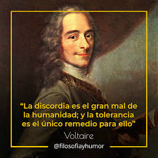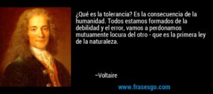 «¿Qué es la tolerancia? Es la consecuencia de la humanidad. Todos estamos formados de la debilidad y el error, vamos a perdonamos mutuamente locura del otro, que es la primera ley de la naturaleza«. Voltaire