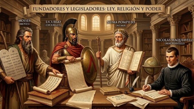 De aquí su veneración hacia aquellos que asientan sus sociedades en sólidas bases espirituales: Moisés, Numa, Licurgo.